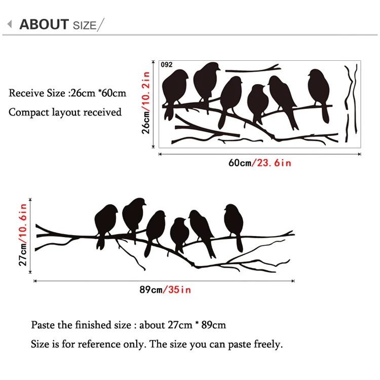 Product Receive Size: 26cm * 60cm Paste the finished size : about 27cm * 89cm Size is for reference only. The size you can paste freely. Material: PVC ************************************************** ************************************************** ************************* Product Features: Environmentally friendly Removable, waterproof,mildew proof Double-sided visual patterns; No marks will be left Can be applied to any smooth and clean surfaces such as walls, doors, windows, closet, etc. Decorate your home, make it more romantic Try not to paste again and again. NOT suitable for dirty or rough surface