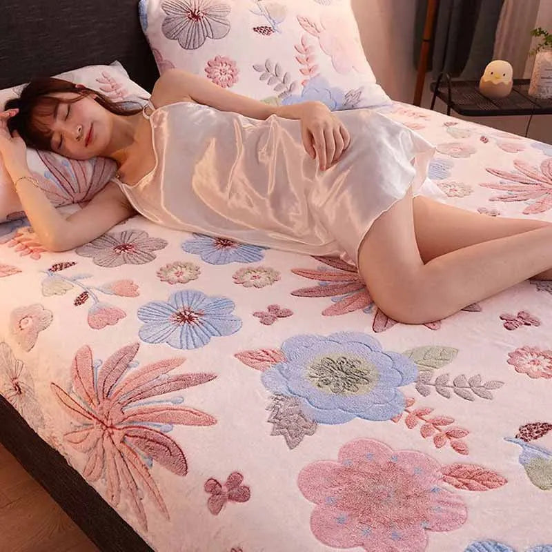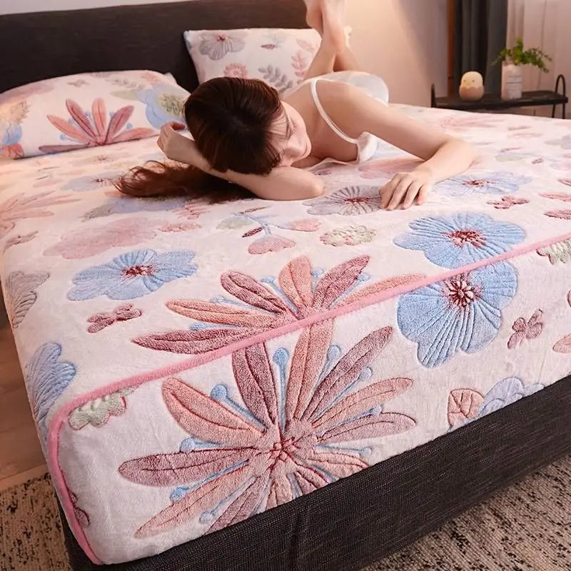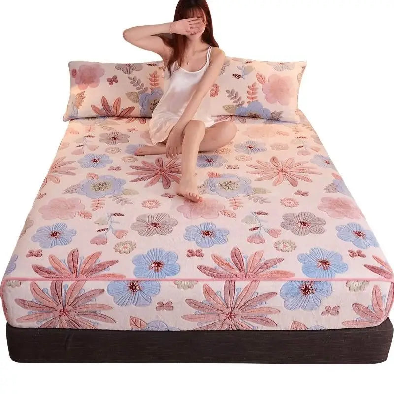 WOSTAR Warm fluffy flannel fitted sheet elastic mattress cover winter coral fleece bedspreads 2people luxury double bed bedsheet
